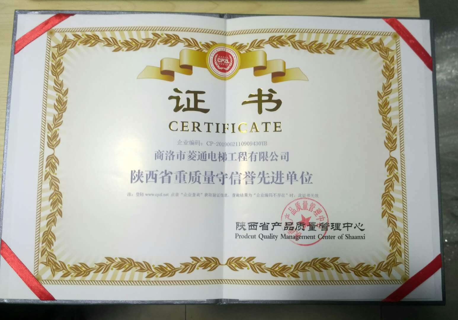 商洛菱通電梯工程有限公司,2019年很榮幸被陜西省產品質量管理中心評為:陜西省AAA級信譽單位和陜西省重質量守信譽先進單位;并頒發(fā)獎牌及榮譽證書。這個榮譽不但得益于各單位的支持與默契合作,更得益于我公司優(yōu)良的團隊氛圍和集體上下一致積極認真的工作態(tài)度。更得益于領導重承諾守信譽:提倡安全第一,質量第一,信譽第一的原則。能被評為3A級信譽單位和信譽先進單位,既是對公司工作的肯定,也是對今后工作做得更好的一種鼓勵,我公司定會盡職盡責做得更好。